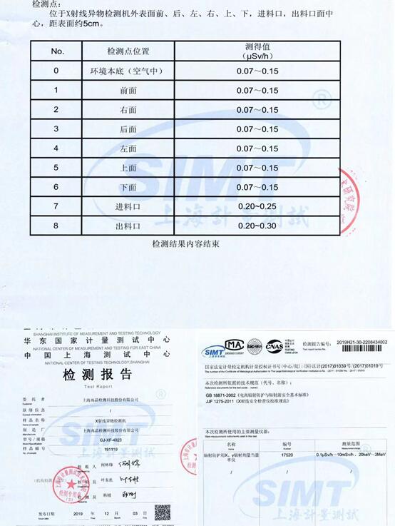 根据最新的检测报告显示:3499拉斯维加斯的每一台X光机出厂辐射控制在1usv/h之内。完全符合欧盟放射管控标准。